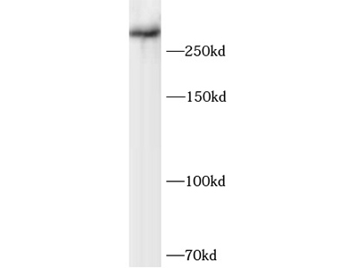 | 图像: | ![]() 将FNab10454(BRCA2抗体)以1:800稀释度, 使用A549细胞进行SDS-PAGE凝胶电泳蛋白印记实验。 |